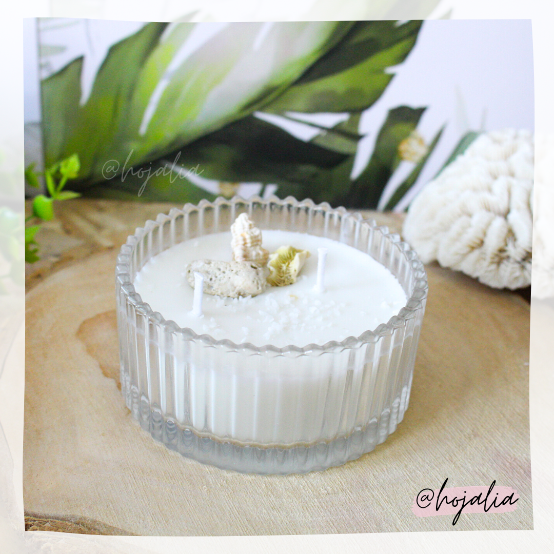 Vela aromatizada con notas altas de mango naranja, inspiradas en las olas del mar. Ideales para decorar e iluminar tus espacios